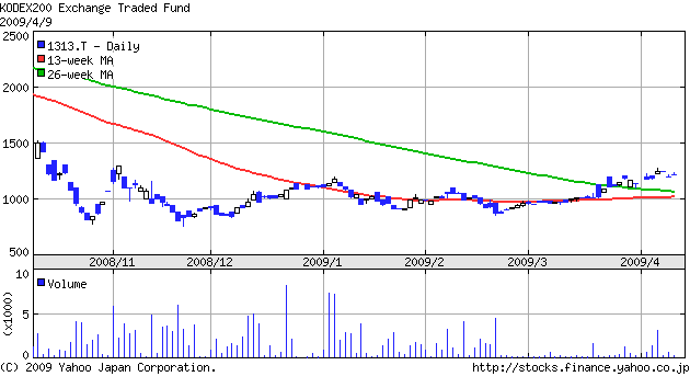 理由は韓国ウォンが暴落していたので為替差益も取れる可能性が高いことと、東証にKODEX200という韓国株ETF(1313)が上場しているので買い易いからです。
