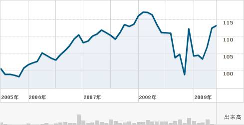 2008年夏まで右肩上がりで、その後暴落しても115が100まで落ちただけなので大したことありませんね、既に戻しているし。